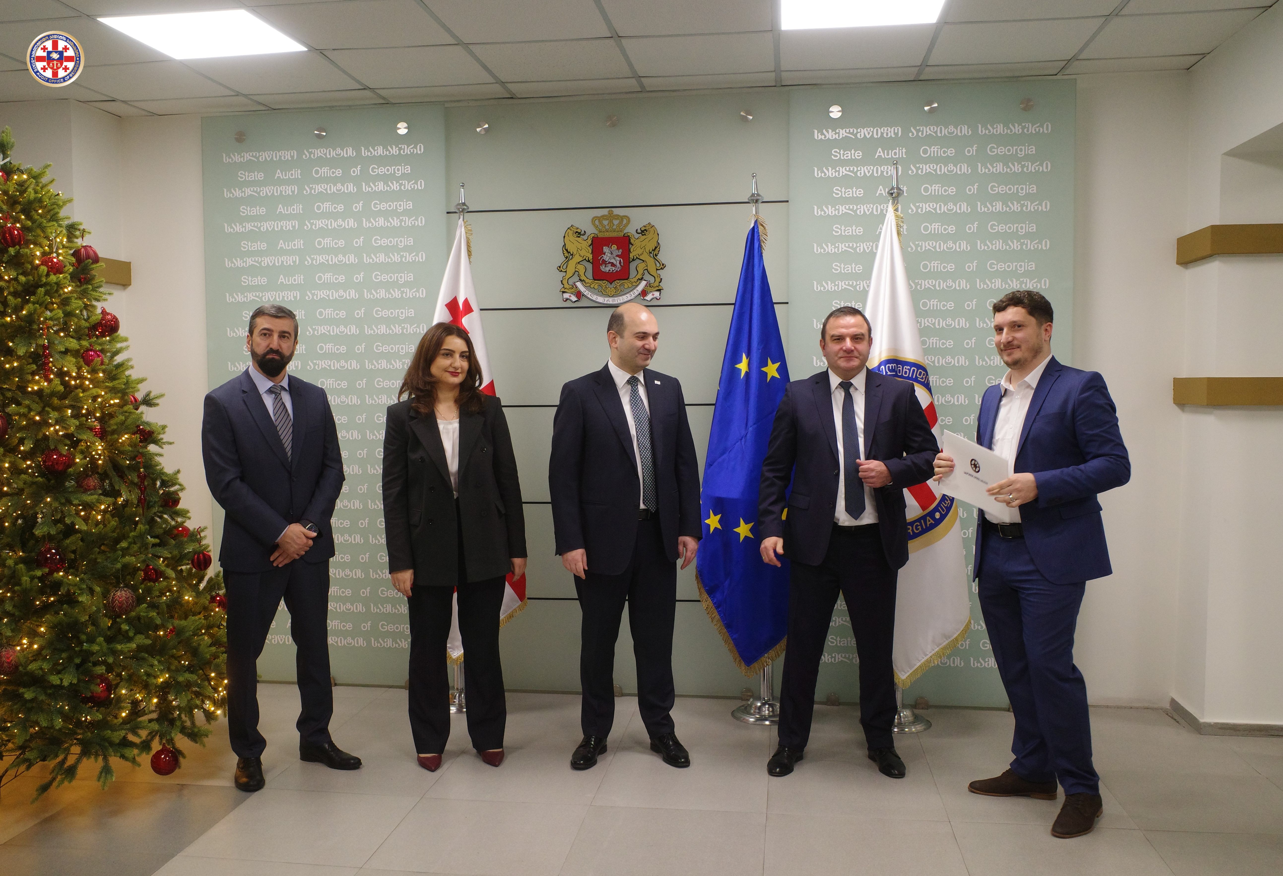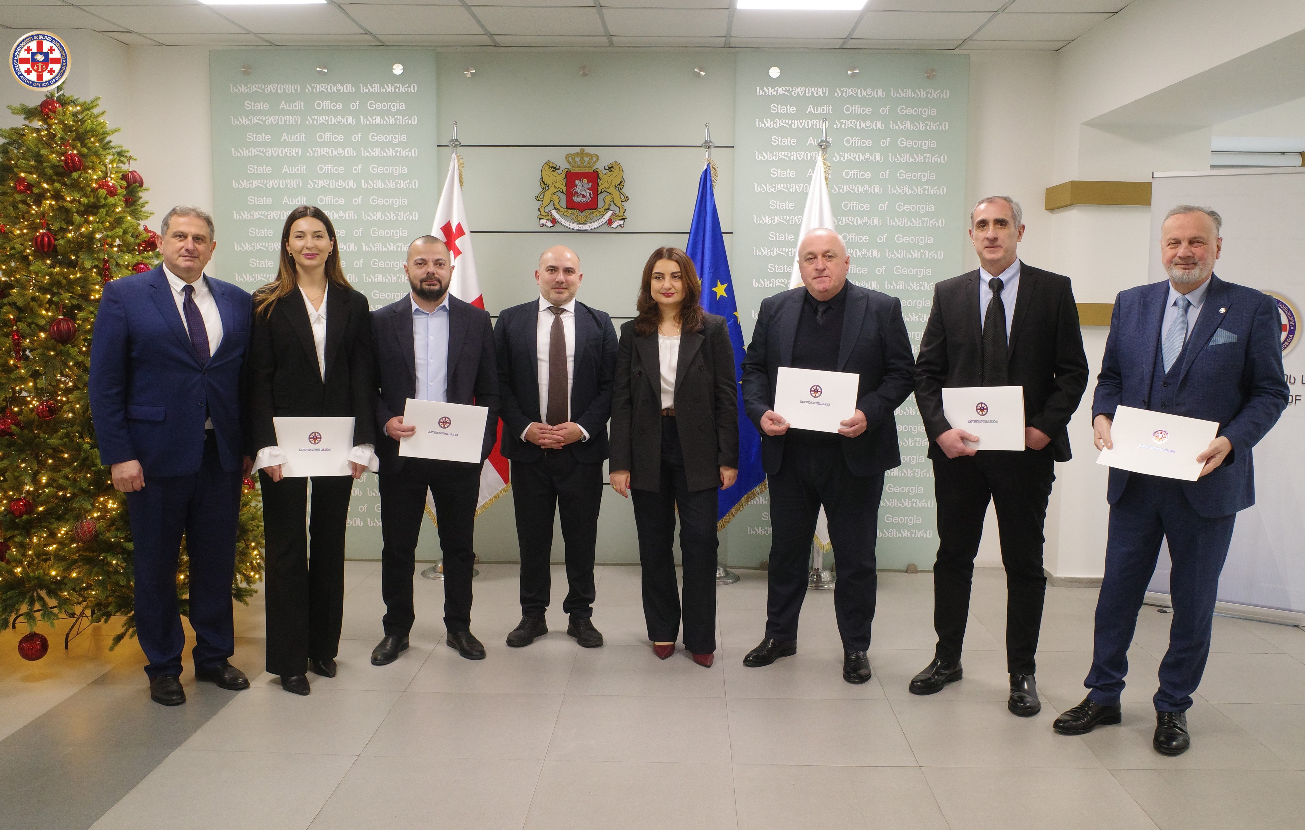 სახელმწიფო აუდიტის სამსახურის 35 თანამშრომელს გენერალურმა აუდიტორმა სამსახურებრივი ფუნქციების სანიმუშოდ და კეთილსინდისიერად შესრულებისთვის მადლობის სიგელები გადასცა. სპეციალური სერტიფიკატები გადაეცათ ასევე სტაჟიორებს, რომლებმაც სახელმწიფო აუდიტის სამსახურში 2024-2025 წლის სტაჟირების პროგრამა წარმატებით გაიარეს და სამსახურის თანამშრომლები გახდნენ.